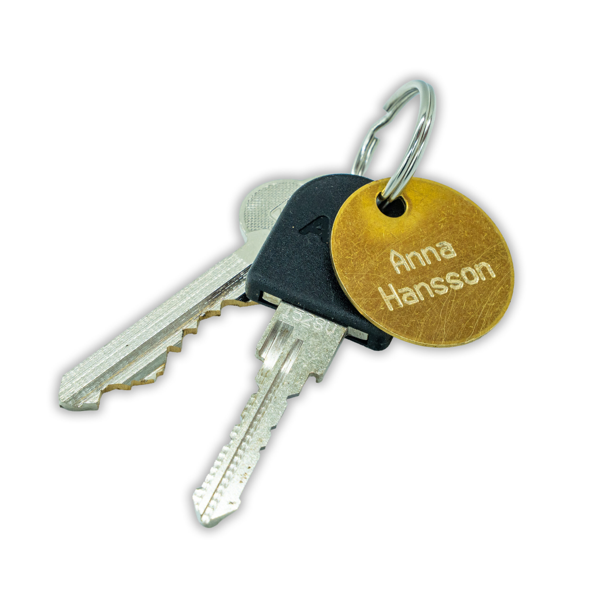 Gravera egen text på denna mässingsbricka som förgyller din nyckelknippa.